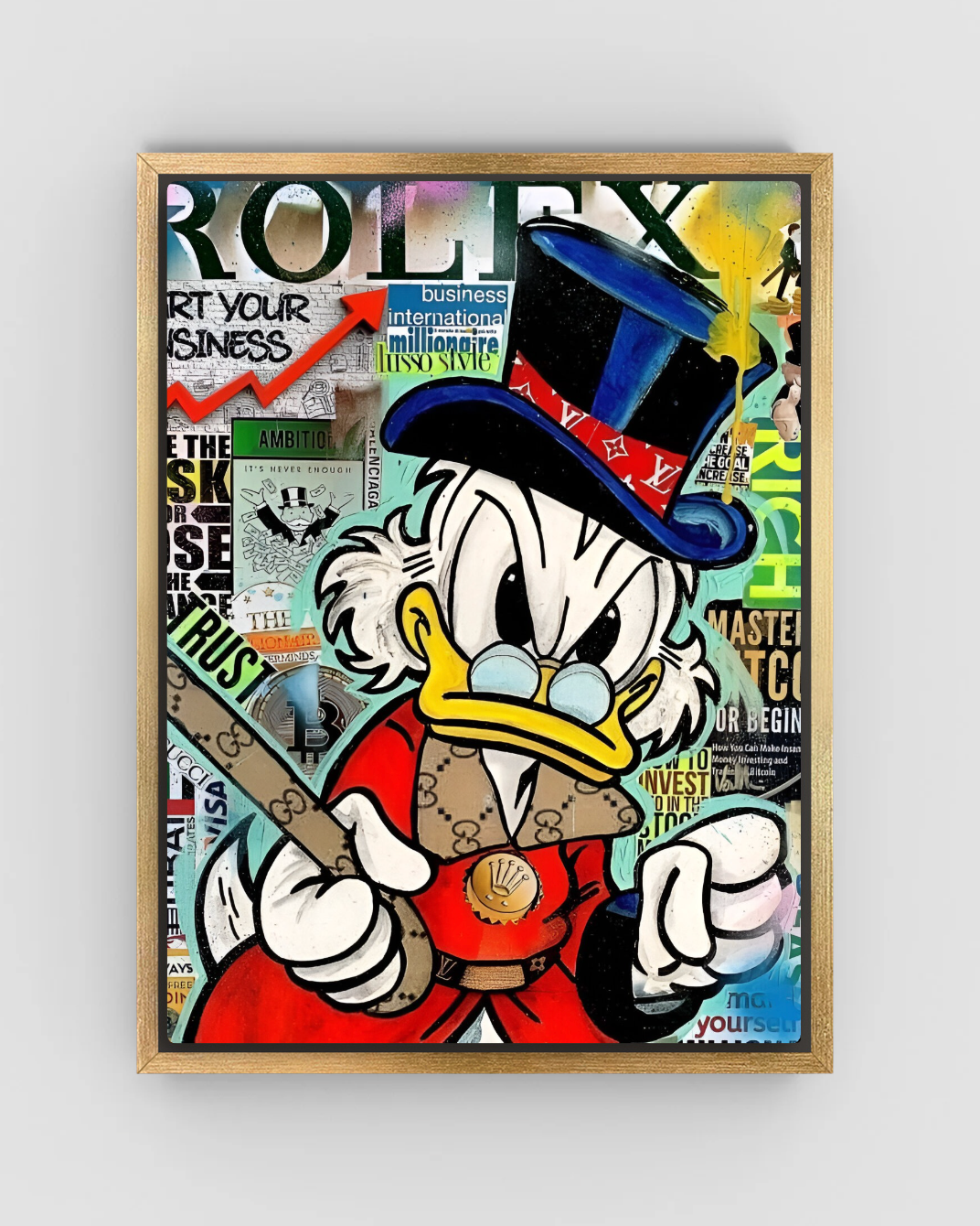 Add bold personality to your walls with Luxury Collection No. 15 from Van Gogh Limited. This vibrant art print captures Scrooge McDuck reimagined in a modern street art style, surrounded by iconic luxury symbols like Rolex, Gucci, and Louis Vuitton. The piece blends comic energy with high-end fashion vibes, making it a standout for any art lover who appreciates both fun and sophistication.