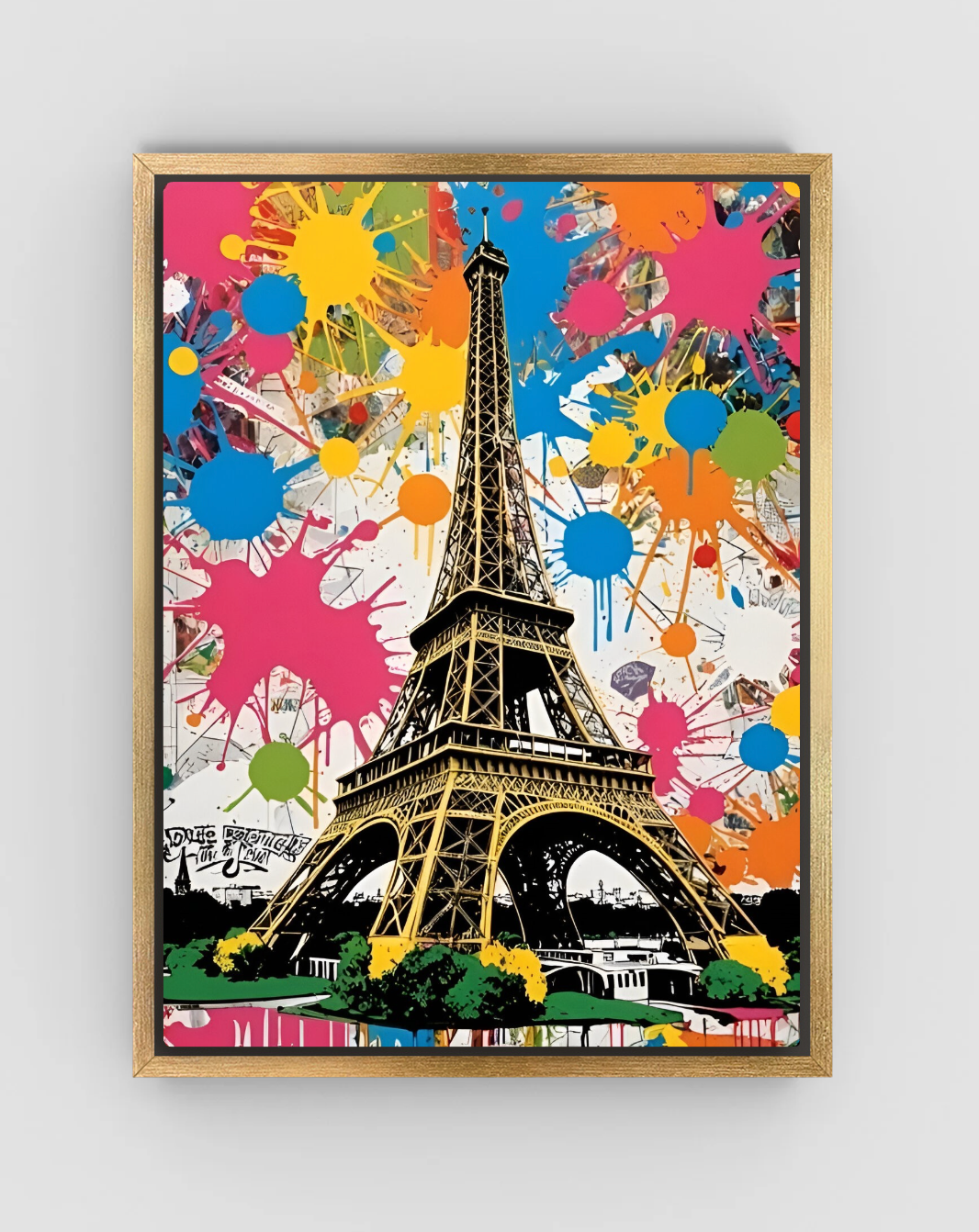 Pop Avenue No. 19 brings the heart of Paris right into your space—with a splash of color and bold energy. This modern art print of the Eiffel Tower mixes classic charm with a street-style twist. Bright paint splatters explode behind the iconic structure, turning the old into something totally new.