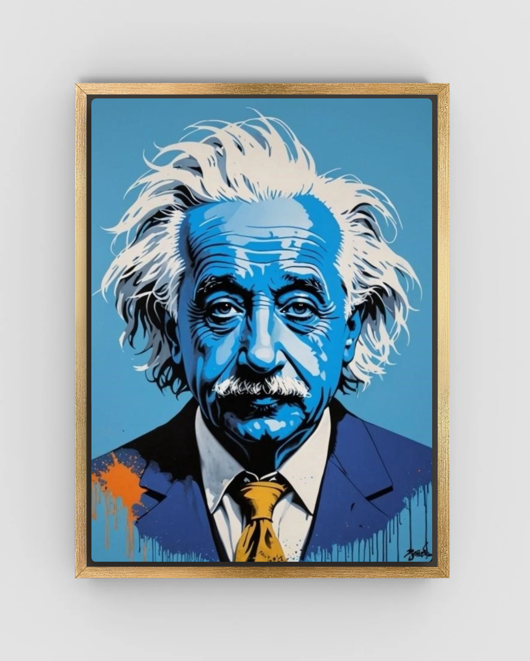 This bold blue portrait of Albert Einstein brings pure genius to your wall. With wild white hair, a smart stare, and a golden tie, this artwork adds power and color to any space. It's not just cool — it's a conversation starter.